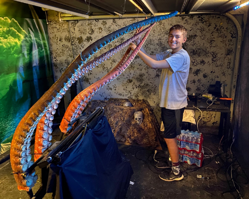 “Our goal is to really immerse you into these environments we’ve made using sound, theatrics, water, air and even smells to create something you’ve never seen before,” Jacob says. “Our haunt is for the community. We simply do it for the reactions and laughter we see from our guests exiting the haunt and that alone is what drives us.”