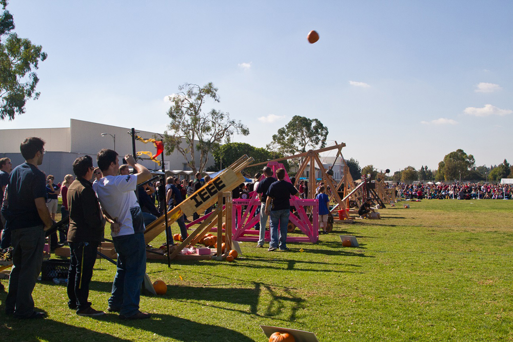The skies over Cal State Fullerton will be full of flying pumpkins today, but there is a perfectly reasonable explanation. It is just the return of the annual Pumpkin Launch, co-organized by the university and the Discovery Cube OC. Come out and see which competitors have the right stuff to make their gourd soar. It’s fun to see which ones succeed and which ones splatter on the ground.